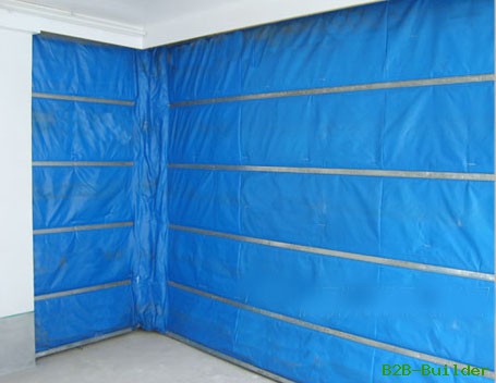 制作說明:1、簾面從受火面至背火面結(jié)構(gòu)依次為0.2mm厚無機(jī)防火卷簾裝飾布、2mm厚無機(jī)防火卷簾防火布、無機(jī)防火卷簾防火隔熱毯、0.3mm厚無機(jī)防火卷簾防輻布,簾面復(fù)合層厚度13mm;